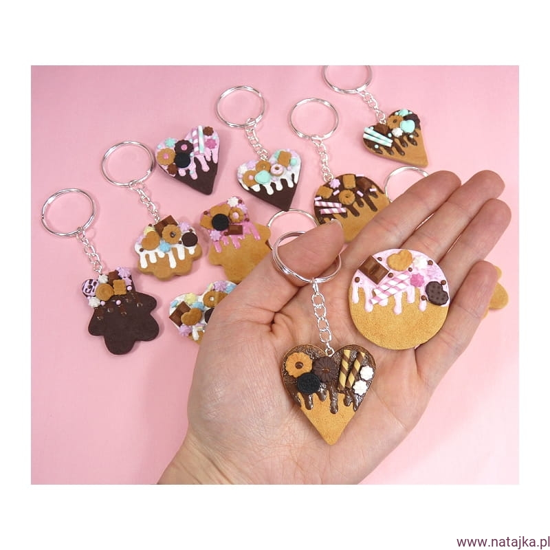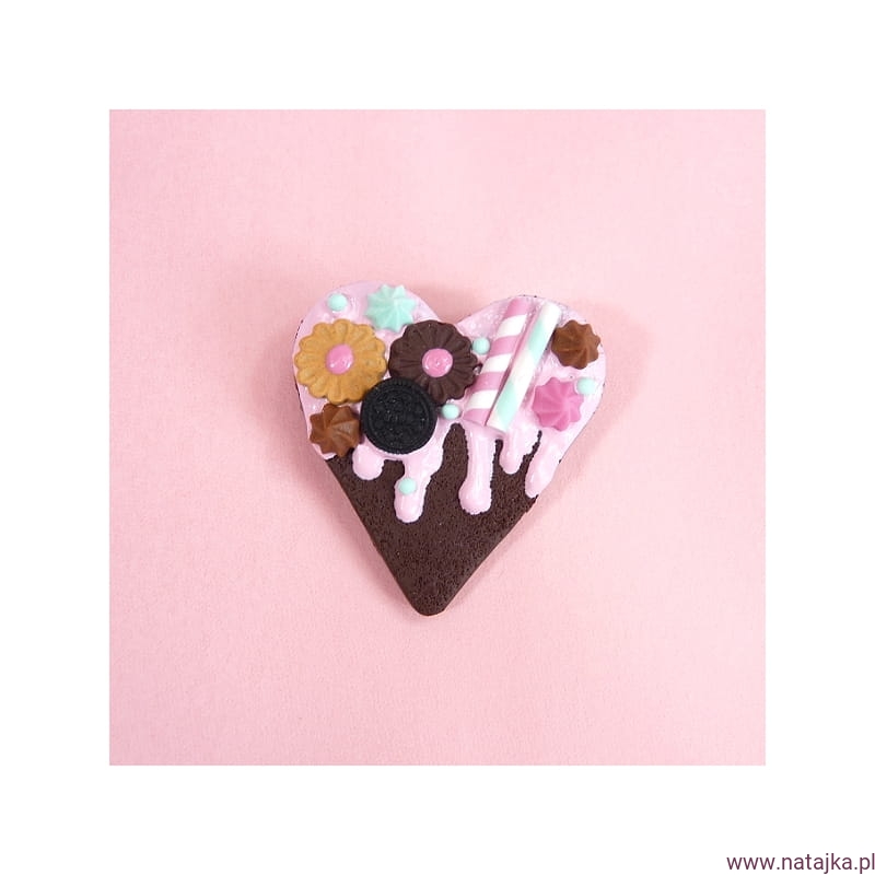 Broszka z uroczym ciasteczkiem, zdobionym polewą i miniaturowymi słodyczami