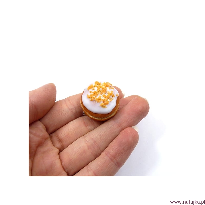 Broszka z pączkiem, polanym pysznym lukrem ze skórką z pomarańczy