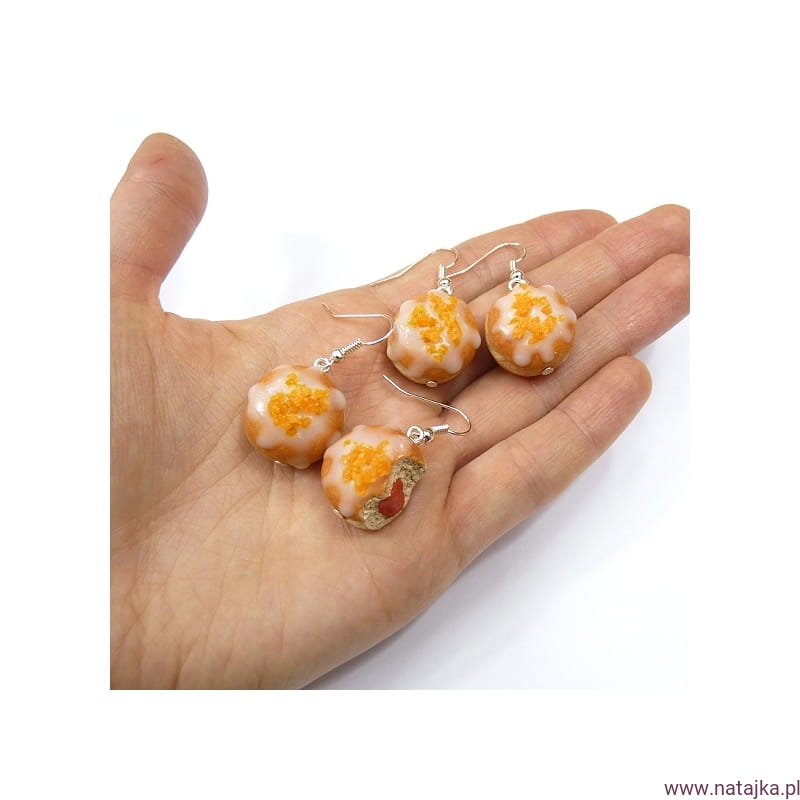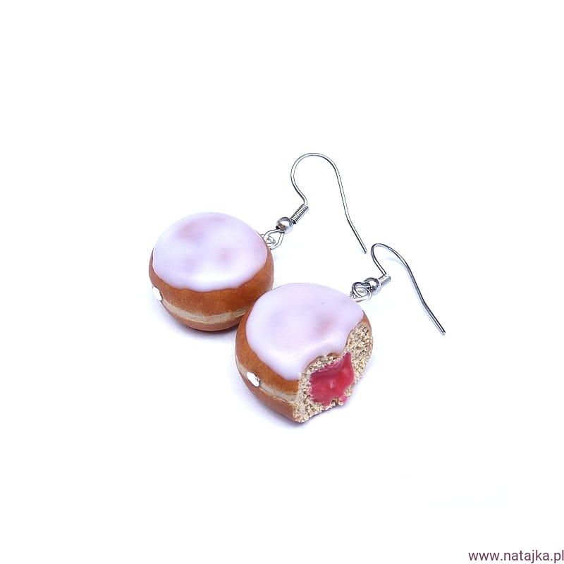 Kolczyki miniaturowe pączki z lukrem i konfiturą różaną:)