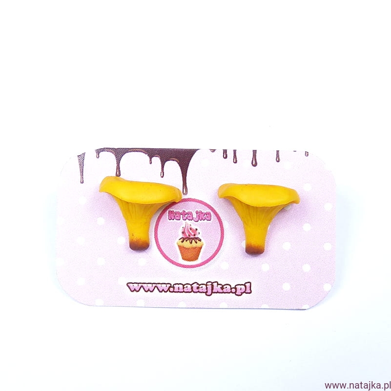 Kolczyki sztyfty (wkrętki) z miniaturowymi kurkami. Silikonowe zatyczki w zestawie.