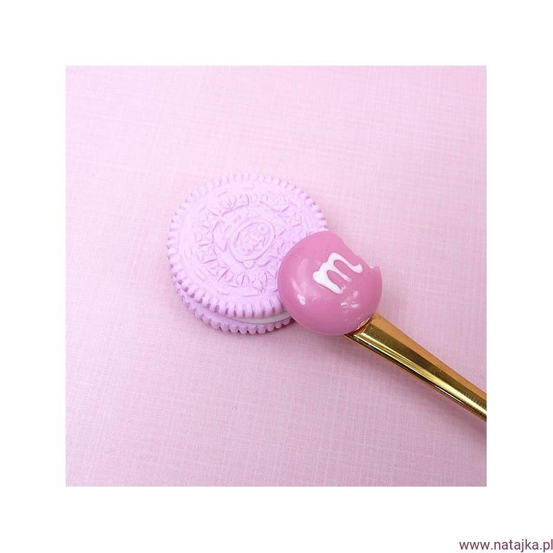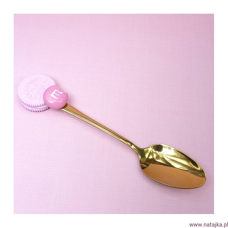 Łyżeczka do cukierniczki/deserów/kawy zdobiona słodyczami z wysokiej jakości masy termoutwardzalenj FIMO. Długość całkowita: ok. 16cm, średnica ciastka: 3cm.